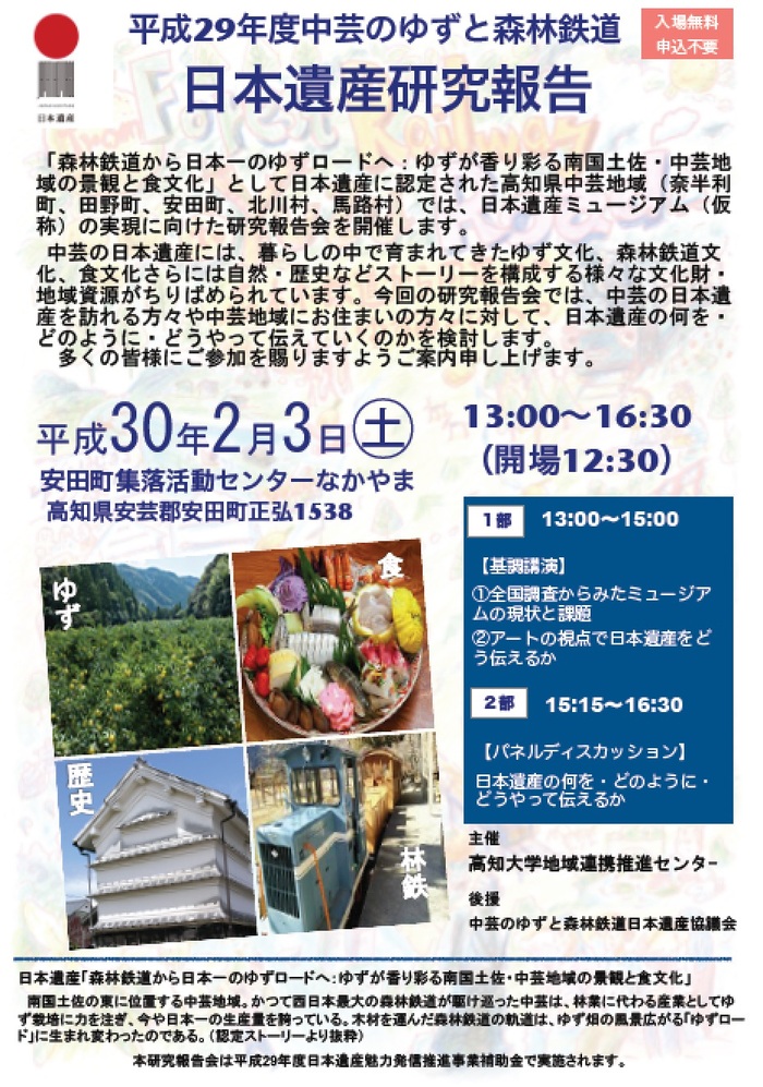 平成29年度中芸のゆずと森林鉄道日本遺産研究報告会のご案内