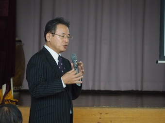 開講にあたって、冒頭に馬路村の清岡教育長からご挨拶を賜り、平成30年度の講座がスタート! 第1回目の講師は、高知大学医学部溝渕教授です。