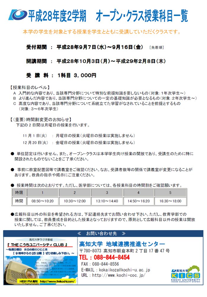 [注意]ホームページでの受付を行った場合、kokaikoza@kochi-u.ac.jpより申込受付のメールが送付されます。
